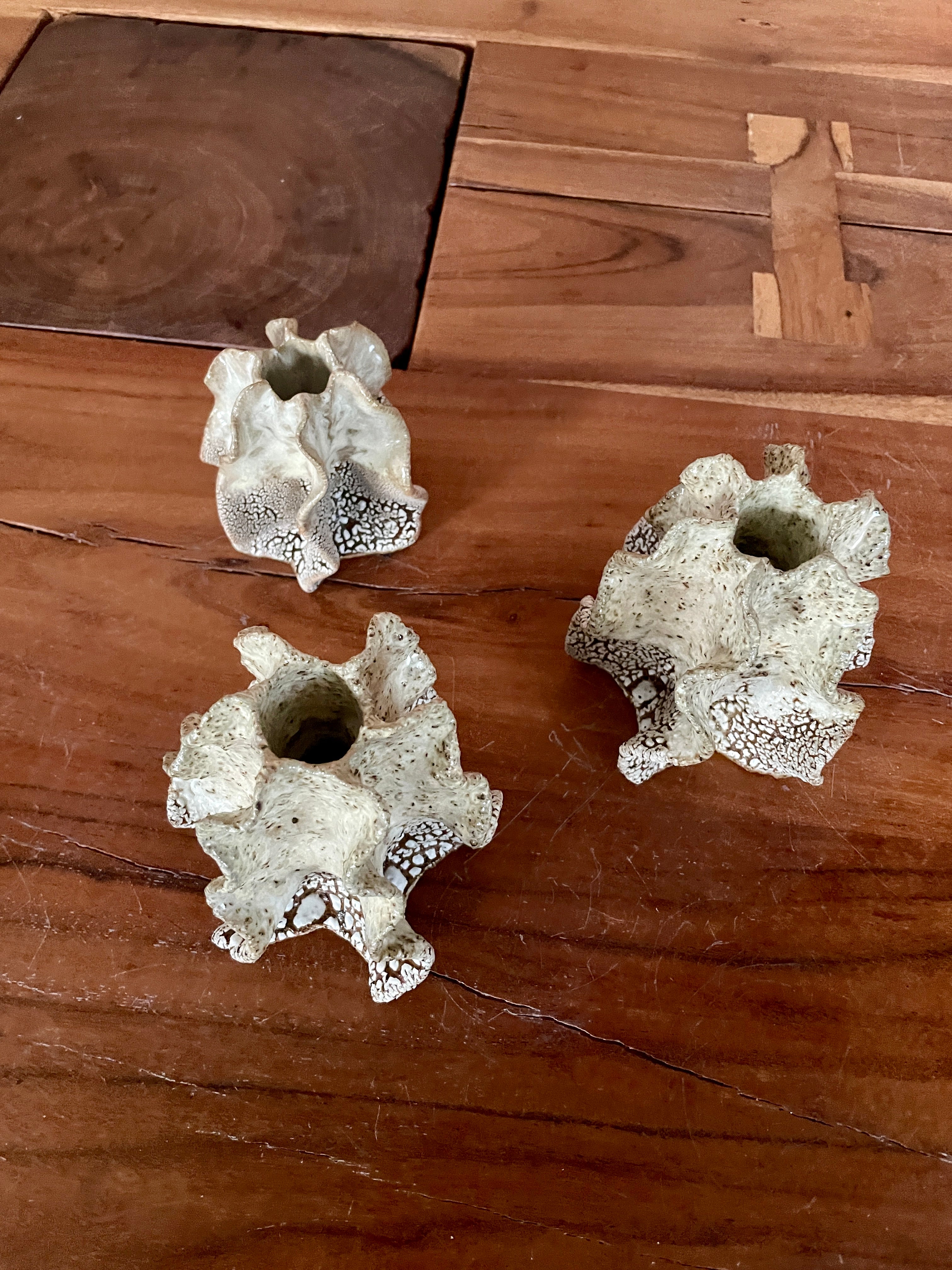 Original kridthavs candle holder from Clay by Bond. Organic shapes and tactile glazes that bring beauty and elegance into your home. The candlestick is created in a beautiful golden clay, and glazes with a white texture glaze on the bottom and a golden crystal glazes on top, witch add a s shine and highlights the texture and detail of the work. The kridthavs candle holder is shaped in a unique, wawes design, inspired by the natural movements of the sea.